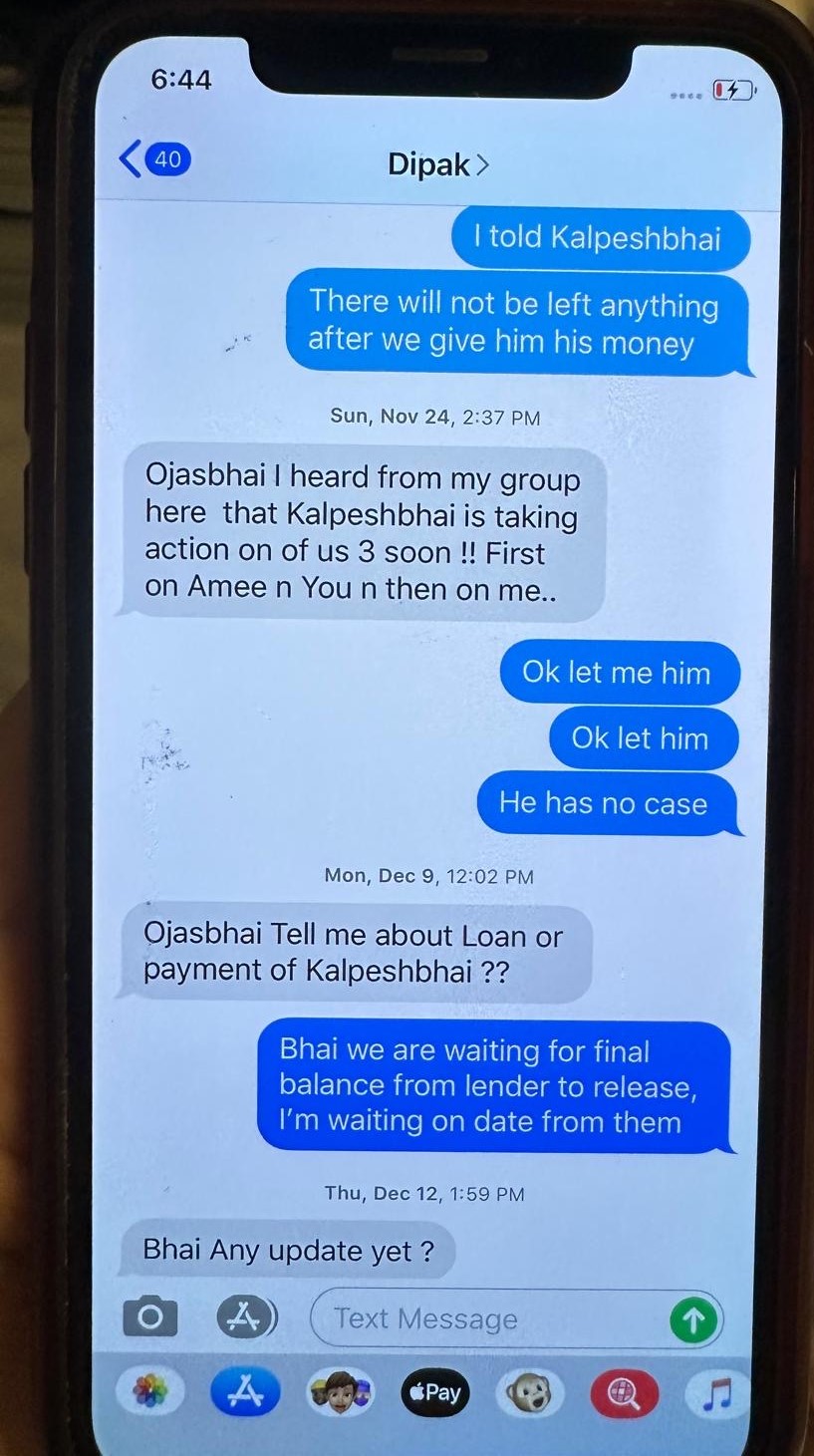 Text message exchanges between Patel and Dipak provide further insights into their connection. In one conversation, Patel appears unconcerned about potential legal action from someone named Kalpeshbhai, stating “He has no case.” This suggests a level of confidence and disregard for the law that may stem from having assistance in covering his tracks.